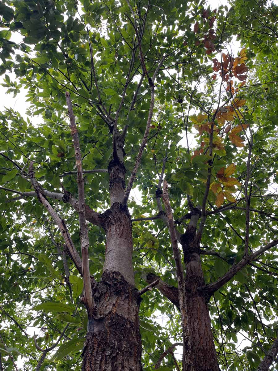Drag the handle on the slider to see the difference between an American chestnut tree with blight and an American chestnut that is showing resistance to blight.