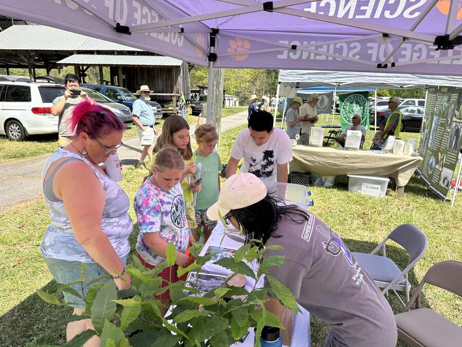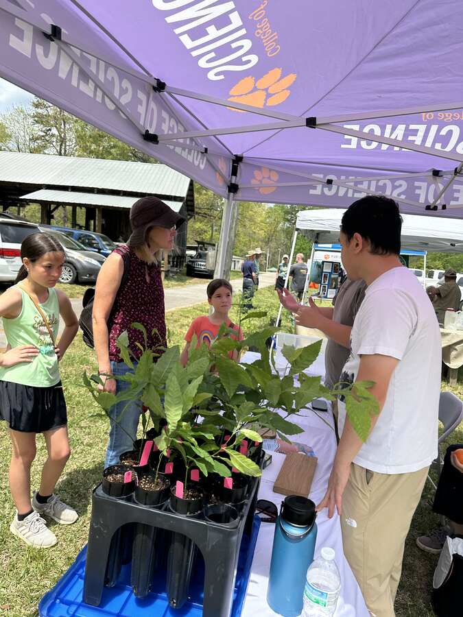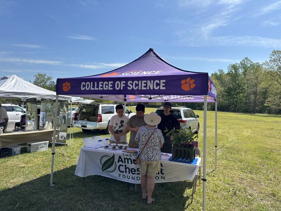 Clemson University students sharing information about the American chestnut.